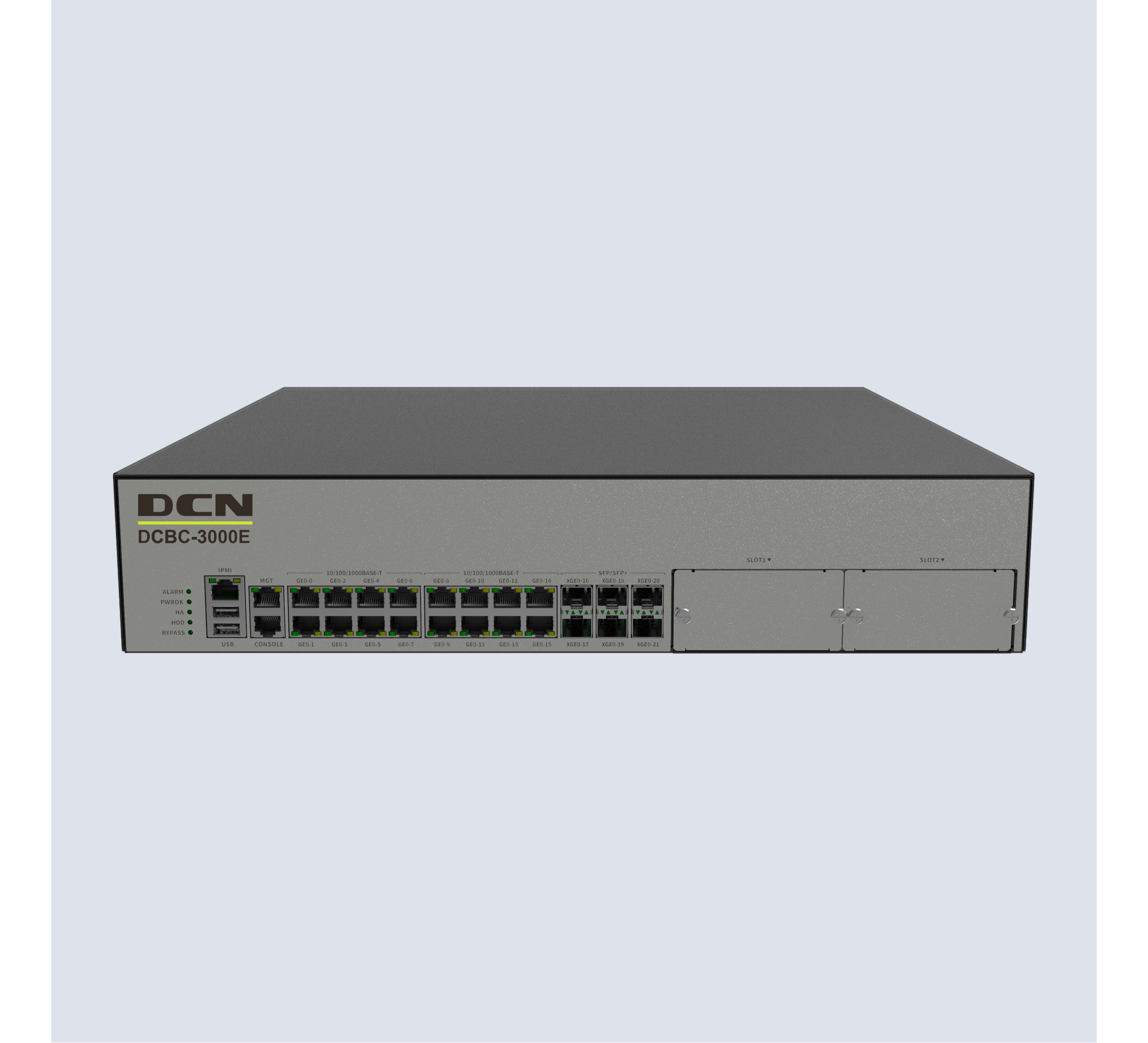 DCBC-3000E 16个千兆电接口,6个万光兆接口,2扩 ,2U高度,19寸机箱,标配1T硬盘,4组bypass,标配双电源,3G审计带宽;